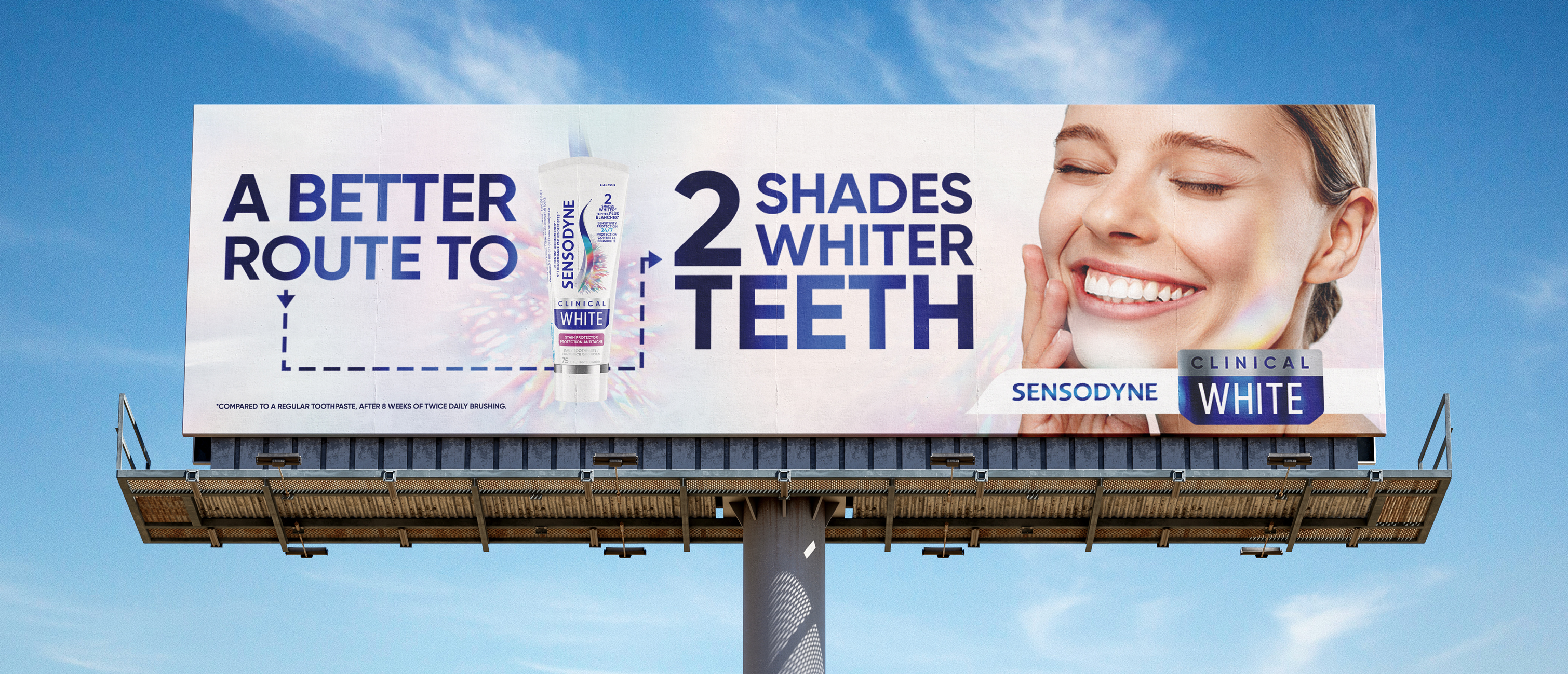 Placed in one of Toronto’s busiest intersections, Front and Spadina, this out-of-home campaign clears a path to whiter teeth and protection with one toothpaste. Using media towers and a billboard, we turned GPS and travel into a route-style story with a polyptych that directs pedestrians towards a brighter smile.